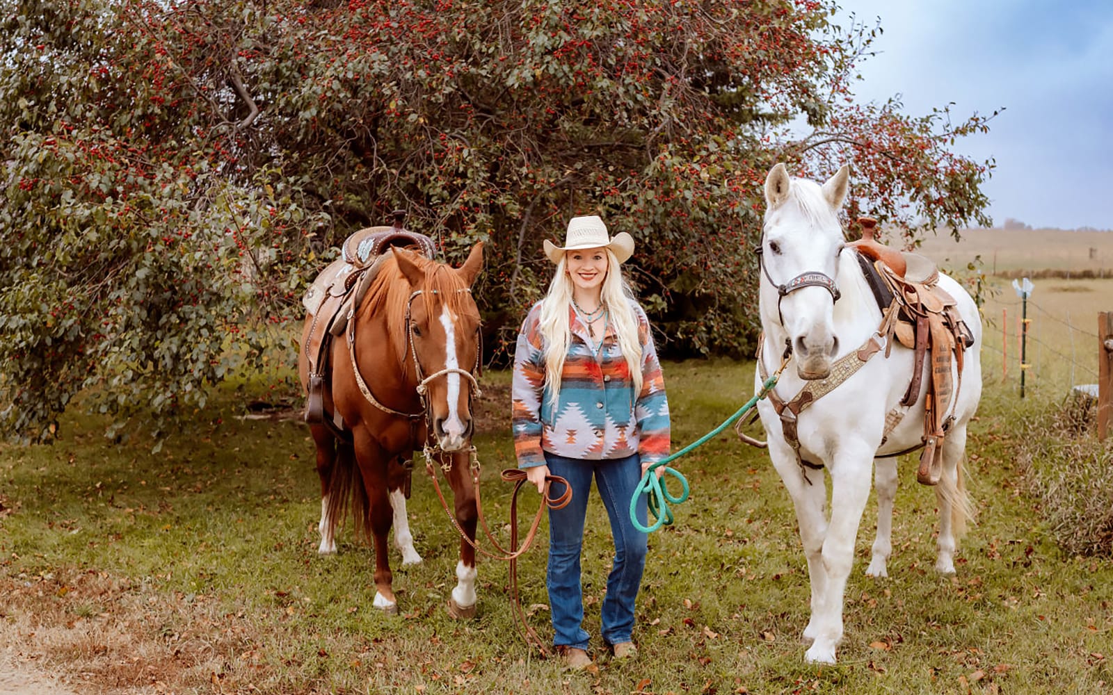 Allisha was born and raised in Dickinson, North Dakota. Allisha has been riding horse for as long as she can remember and has competed in rodeos since third grade. She currently competes in barrel racing. When Allisha is not riding horse or rodeoing, Allisha enjoys outdoor activities, traveling to new places, and spending time with her family and friends. Allisha is married to her best friend, Briar Vogel. Allisha and Briar have two beautiful daughters together.